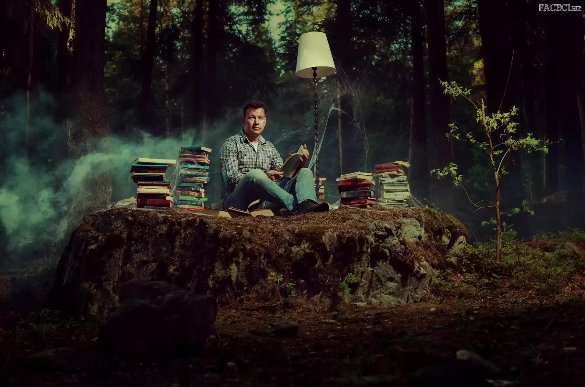 Książki, Lampka, Las, Mężczyzna - faceci.biz